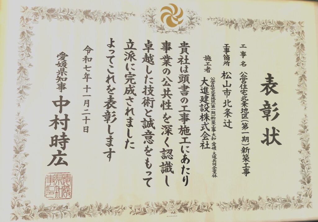令和7年度愛媛県優良建設工事知事表彰